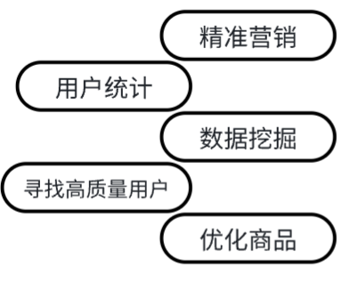 用户画像的主要价值在于将冷冰冰的数据转化为商业价值,就目前来说,用户画像主要可以帮助电商卖家进行精准营销、用户统计、挖掘数据、寻找高质量用户及优化商品(如下图所示)。