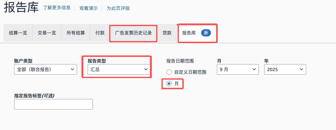 相关费用的后台下载路径:付款--报告库--选择月份下载日期范围交易报告。