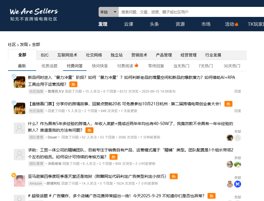 其核心价值体系围绕 “实战经验流通” 构建,形成三大核心板块。问答社区是平台的根基,区别于泛资讯类平台,这里的提问与回答高度聚焦实操痛点:从 “亚马逊 Listing 被判定侵权如何申诉”“独立站 PayPal 账户被冻结解决方案”,到 “新品期如何通过站外推广快速突破流量瓶颈”,每个问题下都有来自资深卖家的多维度解答,部分高赞回答还会附上实操截图、流程文档甚至沟通模板,让解决方案 “看得见、用得上”。平台还建立了 “回答质量评级机制”,通过用户投票与管理员审核,筛选出 “精华回答”,避免无效信息干扰,确保社区内容的专业性与实用性。