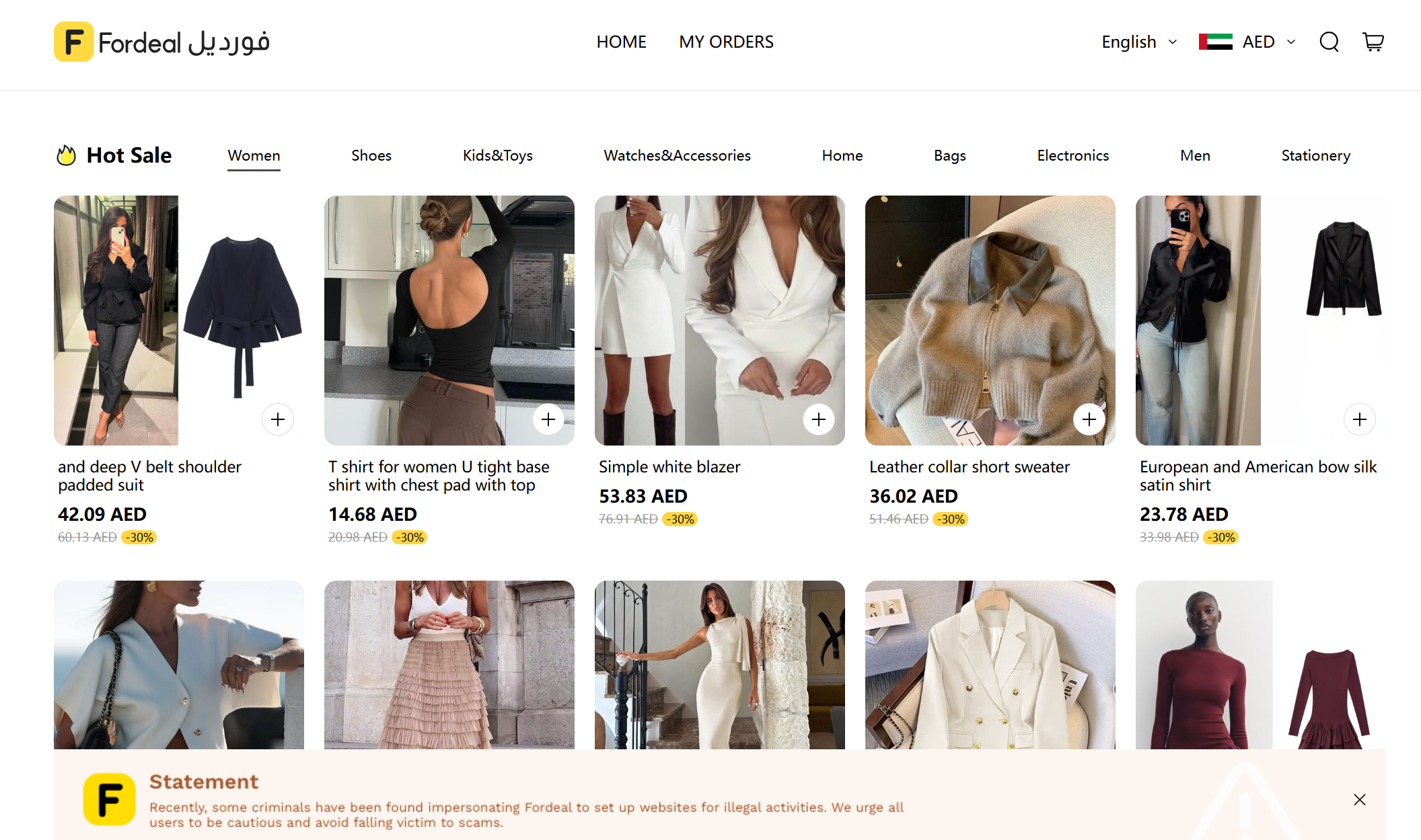 Fordeal 主营地区广泛,销售网点覆盖中东、欧美等众多国家和地区,其中中东市场是其最主要的市场,业务覆盖沙特阿拉伯、阿联酋、科威特、卡塔尔、阿曼、巴林等中东地区。平台经营的商品类目十分丰富,涵盖服饰、母婴、美妆、家居、3C、鞋包配饰等全品类商品,能满足不同消费者多样化的购物需求。